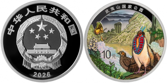 纪念币正面图案均为中华人民共和国国徽,并刊国名、年号;背面均刊“武夷山国家公园”字样及面额。